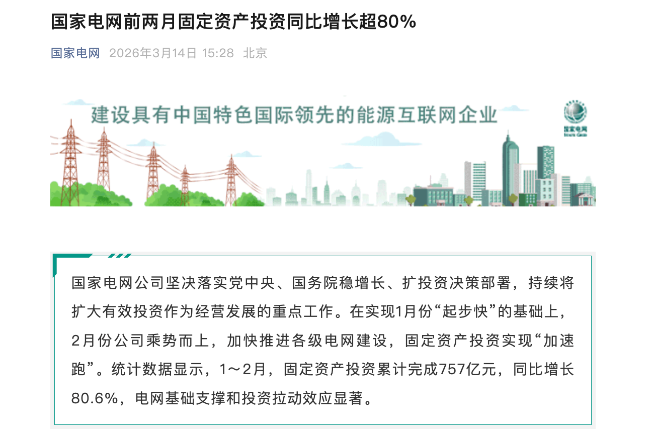 上证报中国证券网讯据国度电网公司3月14日音尘,统计数据知道,1至2月,公司固定财富投资累计完成757亿元网上炒股配资,同比增长80.6%,电网基础相沿和投资拉动效应权贵。